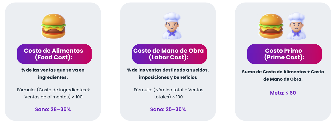Los restaurantes rentables dominan dos frentes: costos y ritmo de sala. Empieza por ver, cada semana, cuatro números: Costo de alimentos (food cost) %, Costo de mano de obra (Labor Cost %) , Prime Cost (suma de ambos) y Ticket promedio. Con esa radiografía tomarás mejores decisiones que con “intuición”.