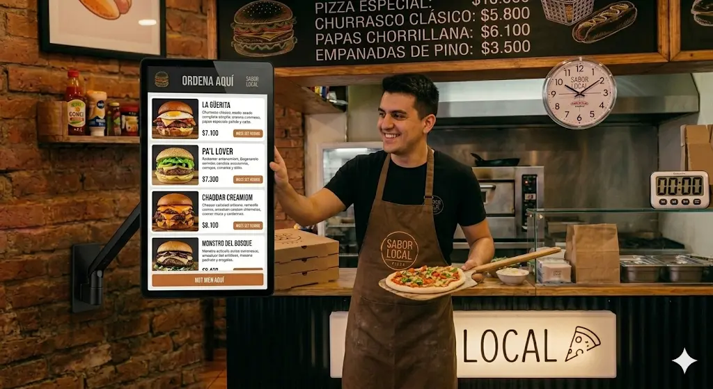 Los kioscos de autoservicio y los menús digitales con pedido directo han demostrado reducir el tiempo de atención en un 40% en restaurantes de comida rápida y casual en Chile y México. Además, según datos de la industria, los pedidos digitales tienen un ticket promedio entre 15% y 20% más alto que los pedidos tomados por un mesero, porque el cliente toma decisiones con calma, sin presión.