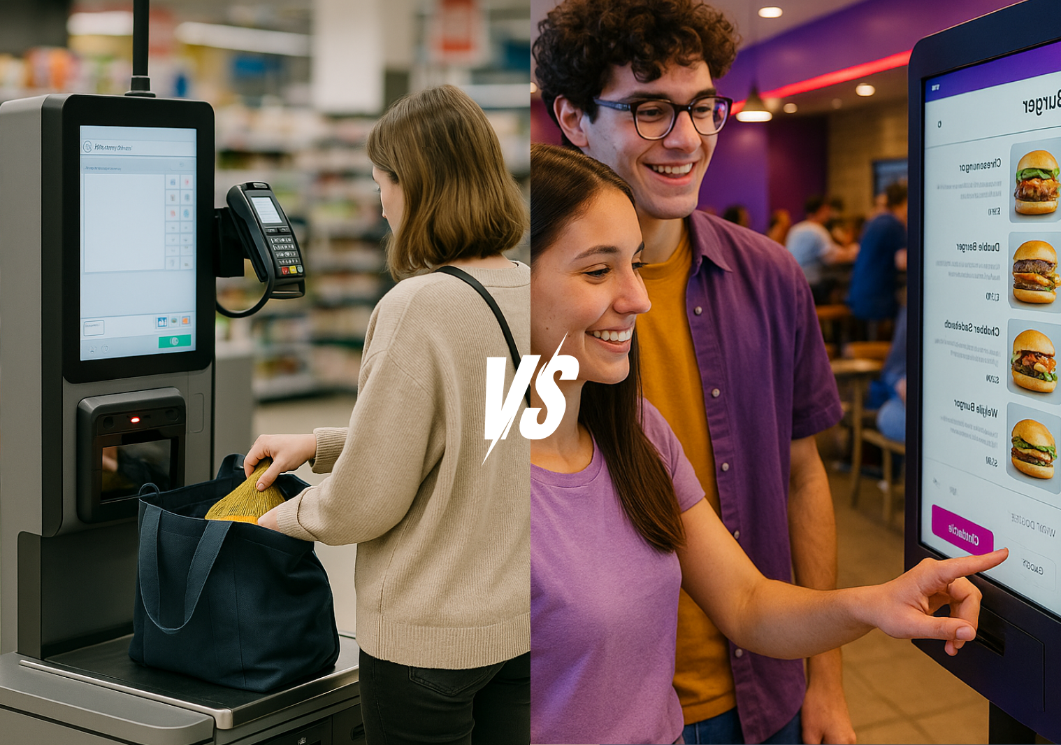 No todas las pantallas de autoservicio son iguales. Mientras el self-checkout busca eficiencia en retail, los kioscos de autoservicio están diseñados para potenciar ventas y fidelización en restaurantes.