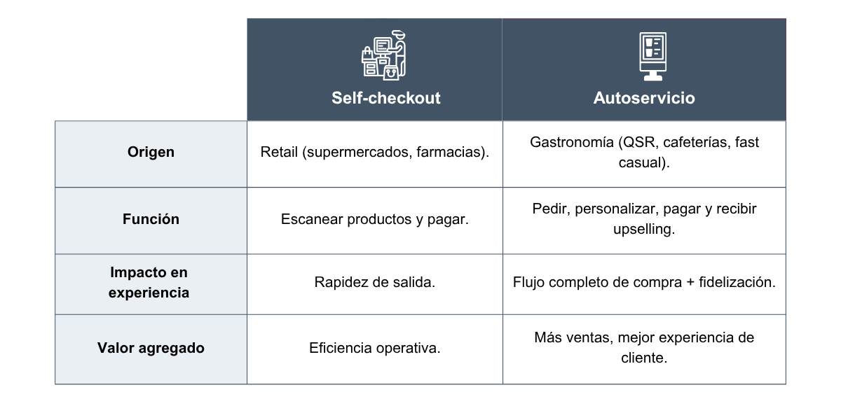 Muchos confunden self-checkout con kioscos de autoservicio. Te contamos las diferencias y qué modelo realmente impulsa restaurantes